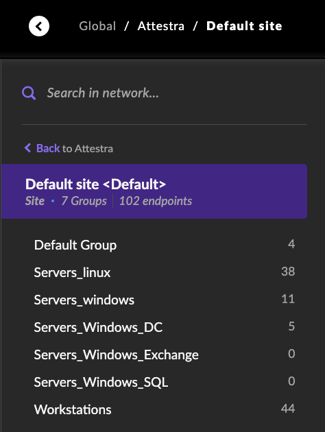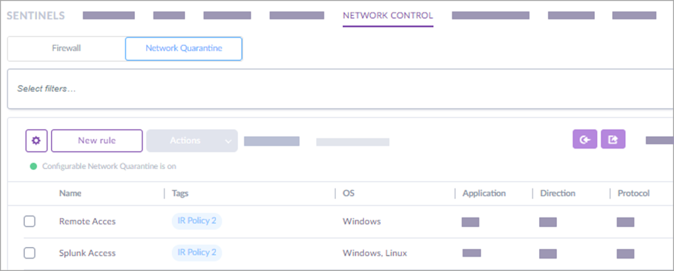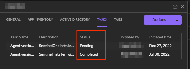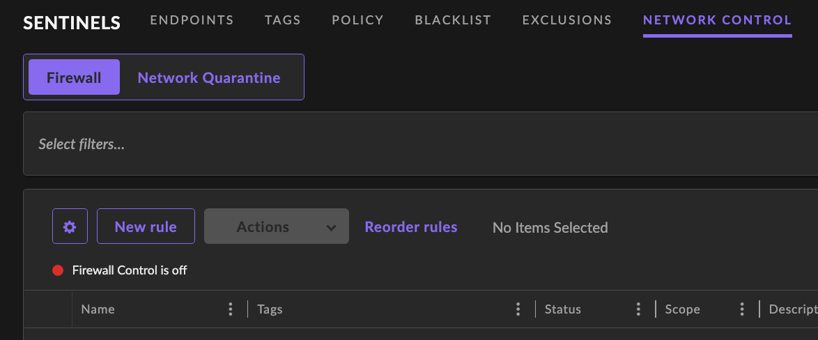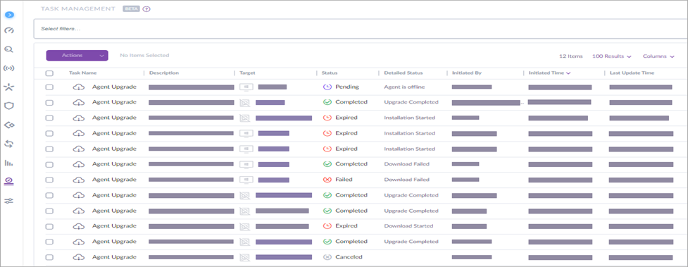 Actions that were available in earlier versions in Network > Advanced or Sentinels > Advanced are now in Sentinels > Actions. In the Actions list, users see the options available for their role and the selected endpoints.