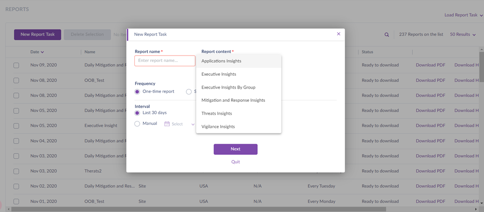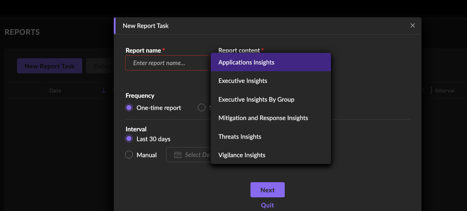 There are no reports configured yet but you can configure different types of report according to your need from the limited options.