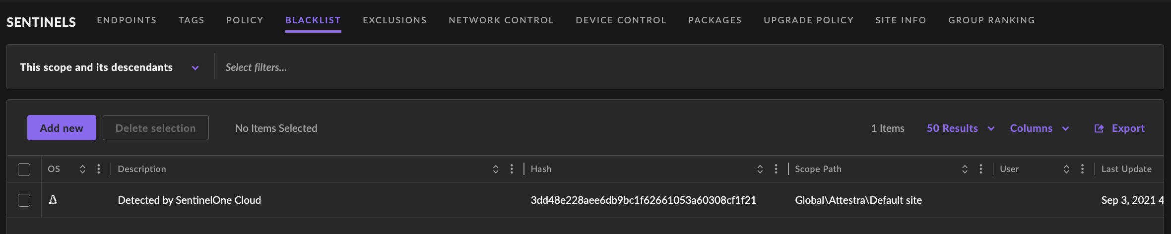 If SentinelOne has detected a threat and you want to protect your organization from it then you can Blacklist it. So, in future similar threat will be directly taken care by SentinelOne.