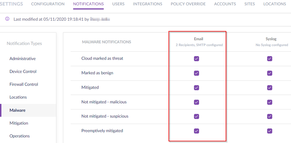 · In Settings>Integrations>SMTP, please configure SMTP to receive the alerts directly to your inbox.